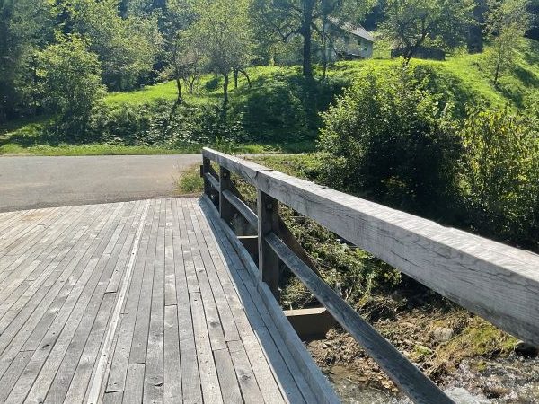 V letu 2021 smo obnovili most v Črnem potoku na Hrvaško – Slovenski meji. Primarno jekleno konstrukcijo smo obnovili, nato pa na novo izdelali leseno konstrukcijo mostu ter ograje. Leseni del mostu je v celoti izdelan iz hrastovega lesa, kar se lepo poda idiličnemu okolju v katerem se nahaja.
